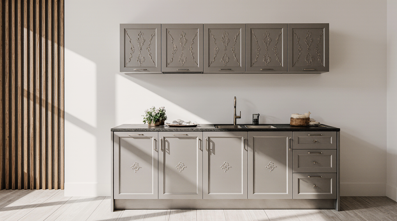 Le placard cuisine aluminium Maroc peut aussi adopter des formes plus traditionnelles avec des moulures discrètes et des poignées chromées. Les couleurs beige, ivoire ou bronze conviennent parfaitement à ce type de design.